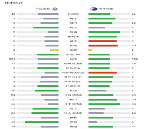 第28分鐘,比卡爾奧射門中框,佐伯補(bǔ)射破門,卡拉巴赫1-0哥本哈根