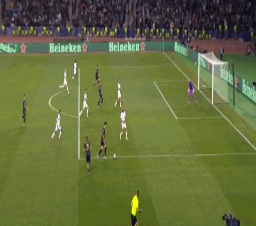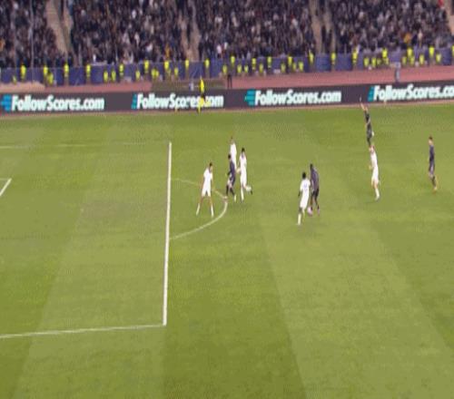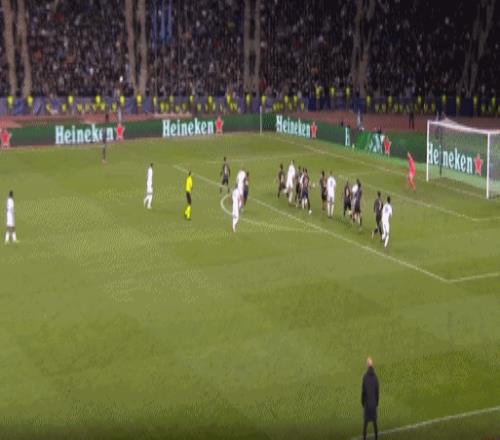 第82分鐘,佩雷拉頭球攻門,球擊中門框彈出