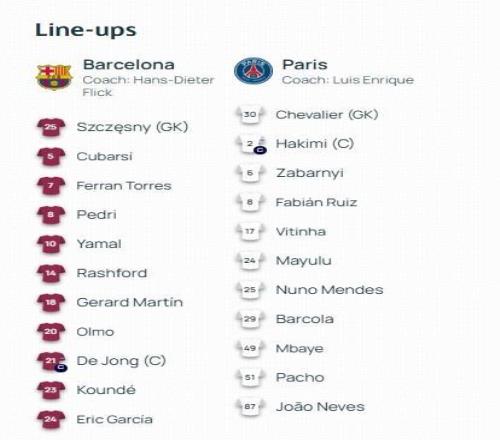 北京時(shí)間10月2日3:00,歐冠聯(lián)賽階段第2輪焦點(diǎn)戰(zhàn),巴塞羅那坐鎮(zhèn)主場(chǎng)迎戰(zhàn)巴黎圣日耳曼,本場(chǎng)主裁判為邁克爾-奧利弗,賽前雙方首發(fā)出爐。